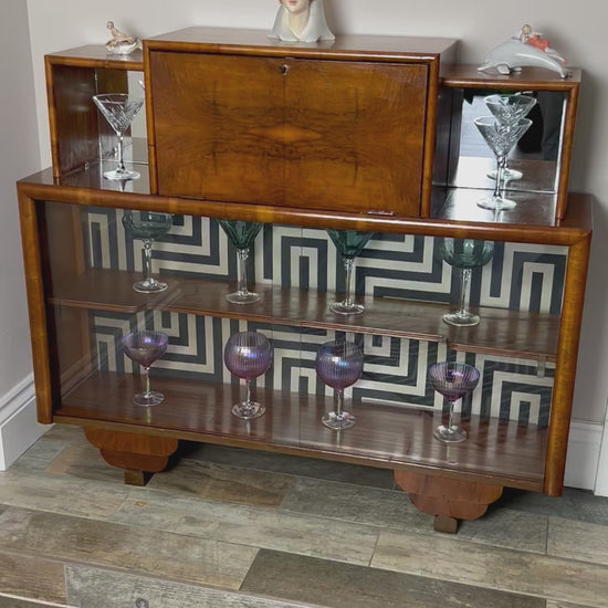 Fantastic Art Deco cocktail Cabinet in walnut veneer