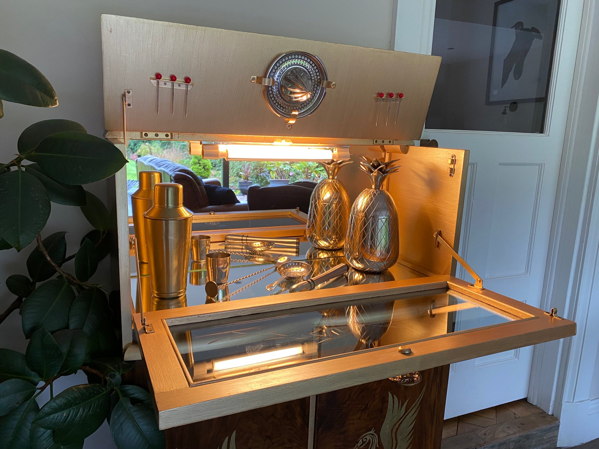 The pull down drinks preparation area has its original light fitting which has been re wired and fitted with a new LED light
