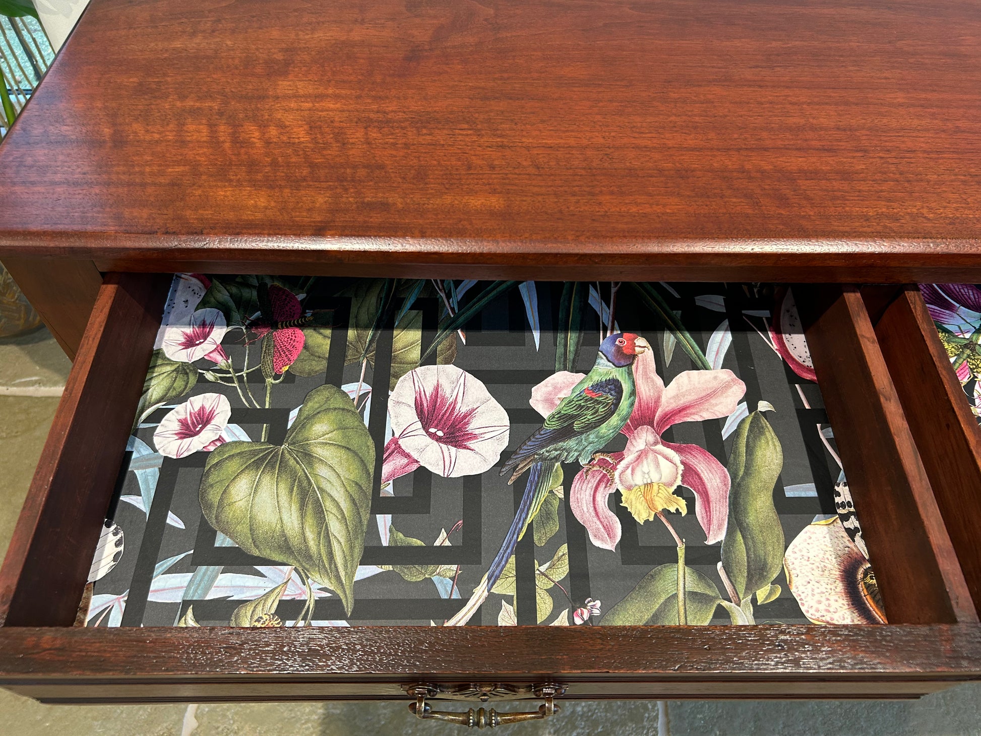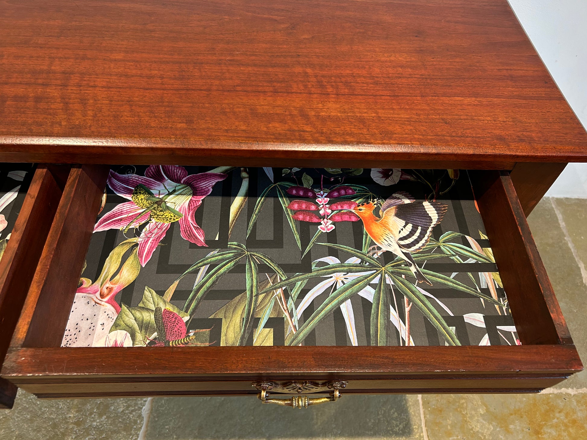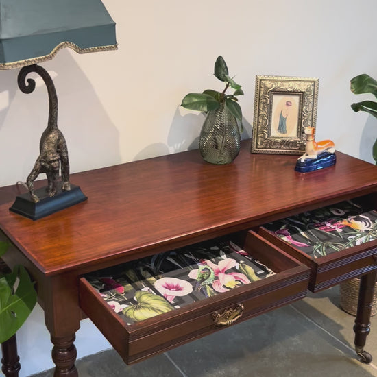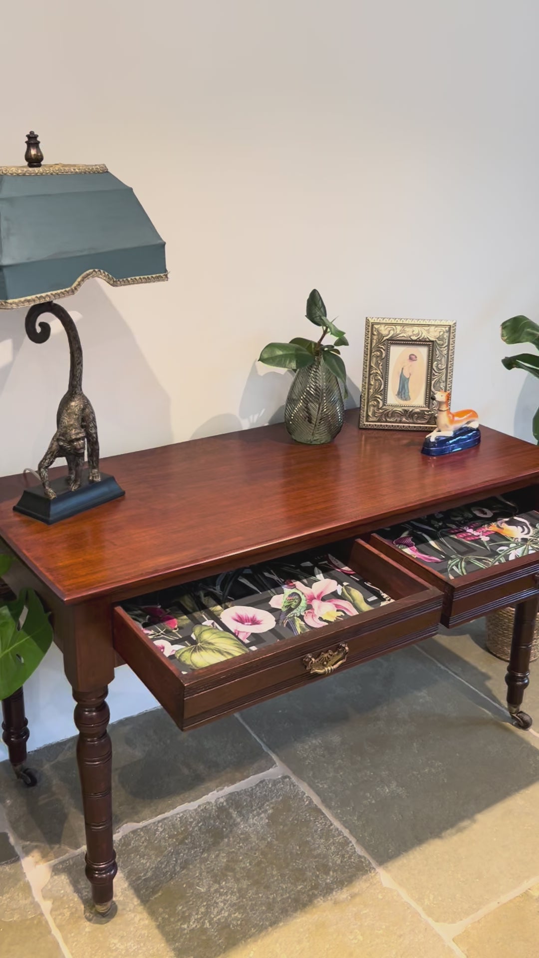 #cottage #vintage #mahogony #desk This table is a beautiful piece of vintage furniture fully restored to its former glory and boasting some extra stylish flourishes with decoupaged draws that really inhance this piece